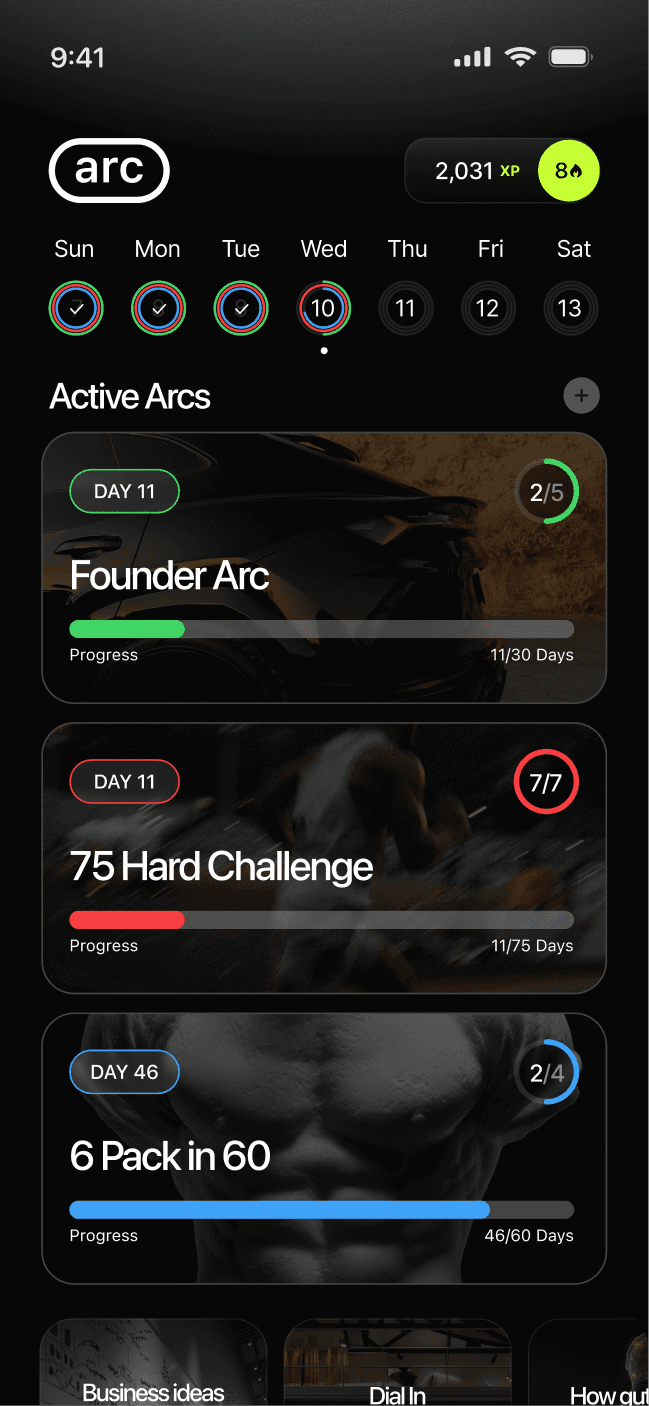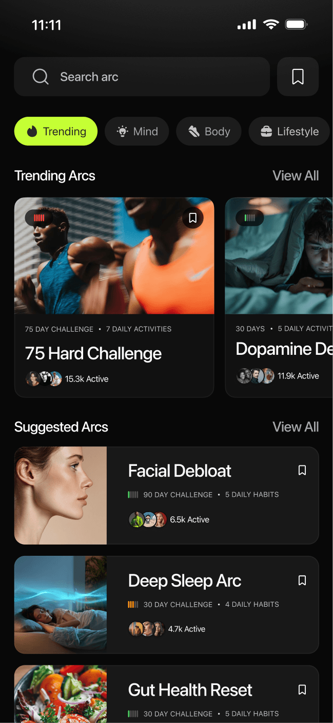 I’m constantly moving—new cities, weird schedules, zero routine. Arc is the first thing that’s made consistency feel simple. I pick an arc, I follow the daily steps, and the progress visuals keep me locked in. It’s like having a personal system that travels with you—and it actually makes you want to show up.